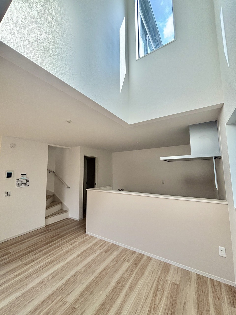 1号棟 吹き抜けのあるリビングは、明るい日差しが差し込みます。 2026/03/28m