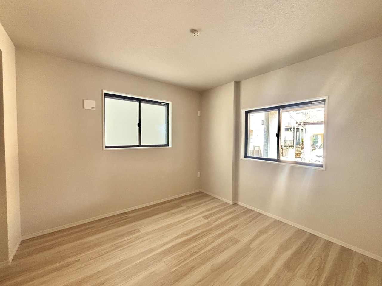 2号棟 ゆとりの5.7帖ある寝室、陽光が入りやすく朝の目覚めも気持ち良く起こしてくれます。 2026/03/28m