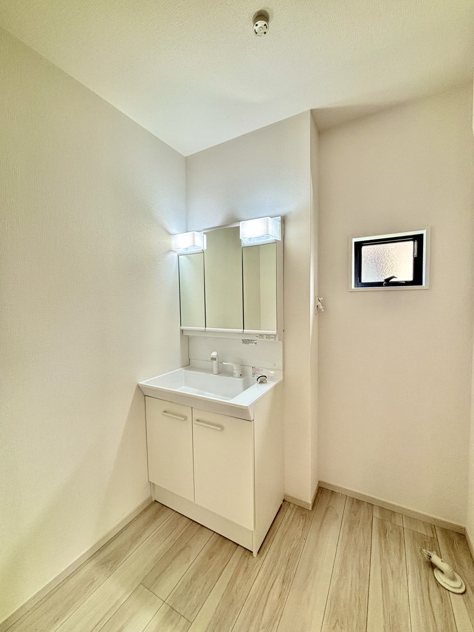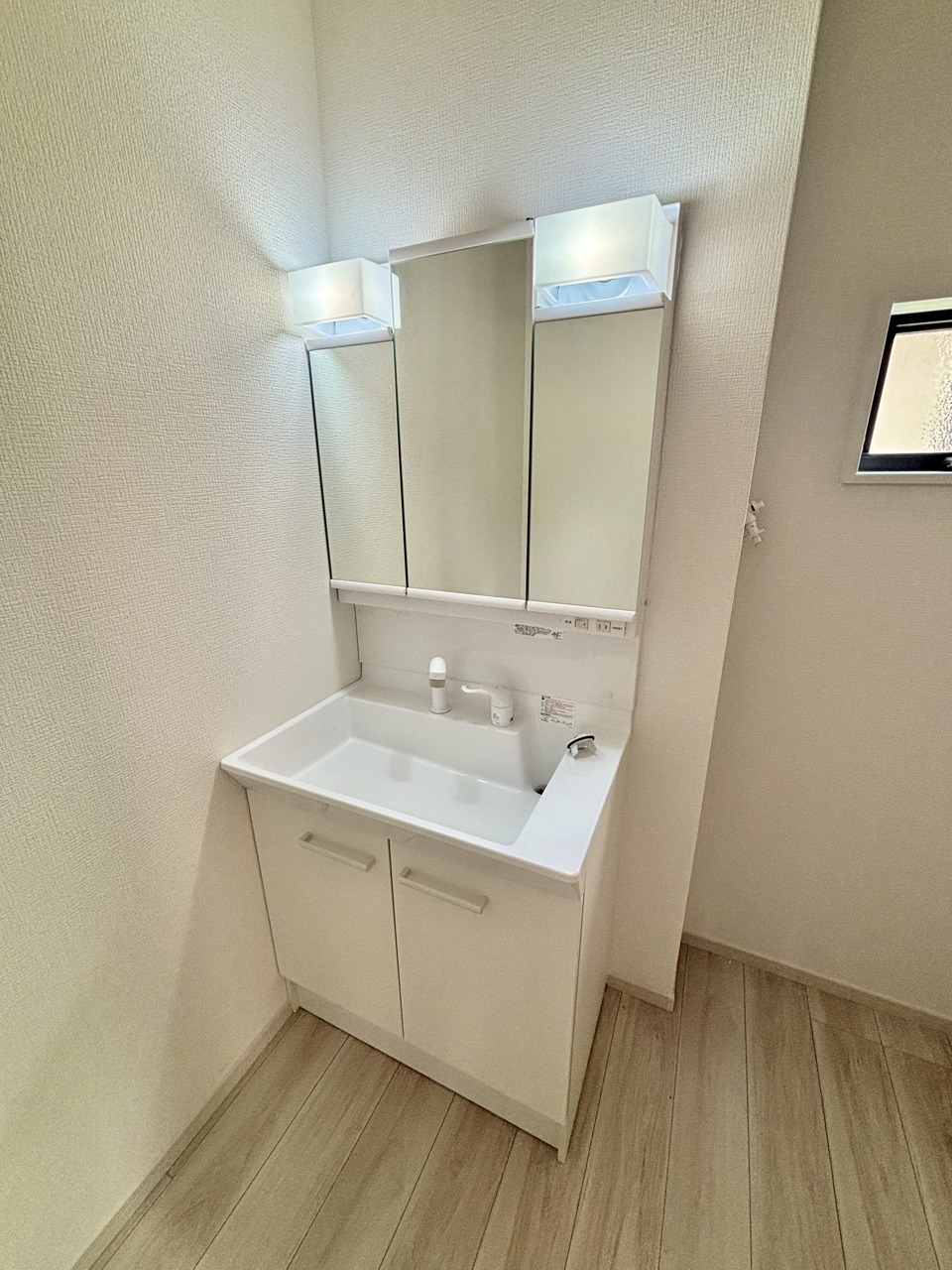 1号棟 お出かけ前の身だしなみに一歩差がつく三面鏡。ミラー裏にはたっぷり収納もございます。 2026/03/28m