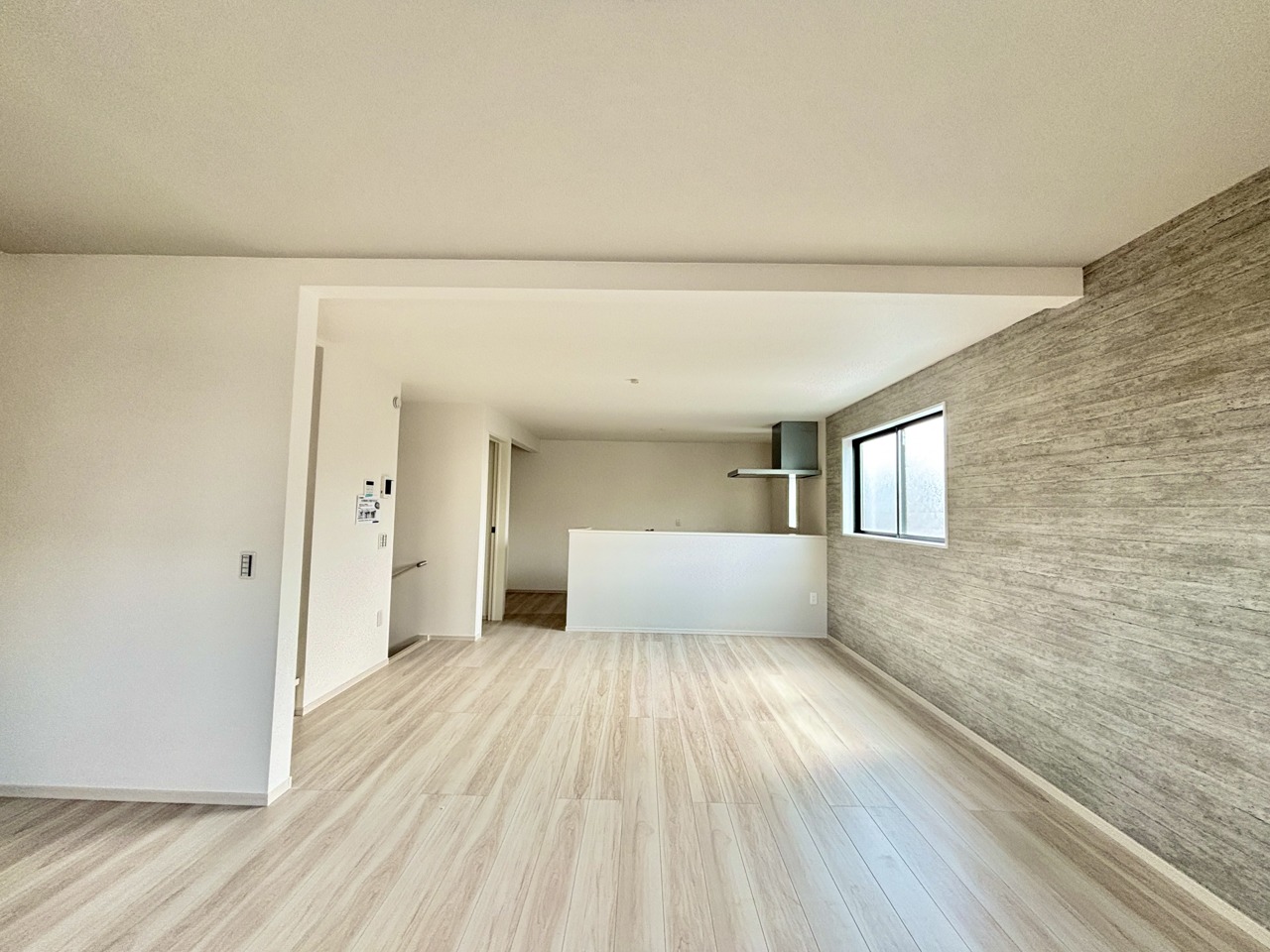 1号棟 どんな家具にでも相性が良い清潔感ある白色調のクロスを採用。主張しすぎない配色、耐久性にも優れた床材は日々のメンテナンスも楽に、快適に過ごして頂けるよう考えられています。 2026/03/28m