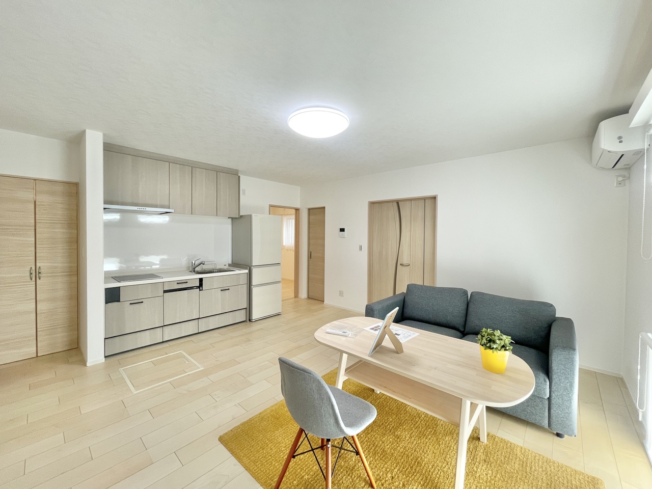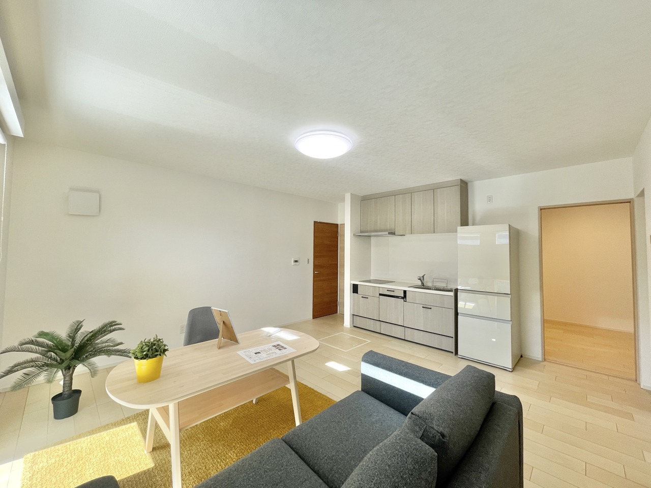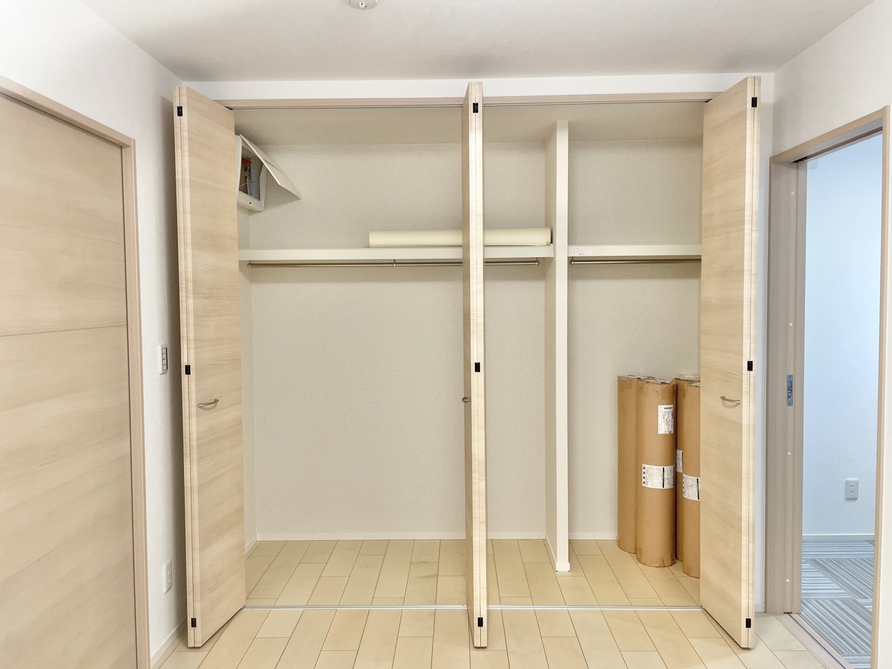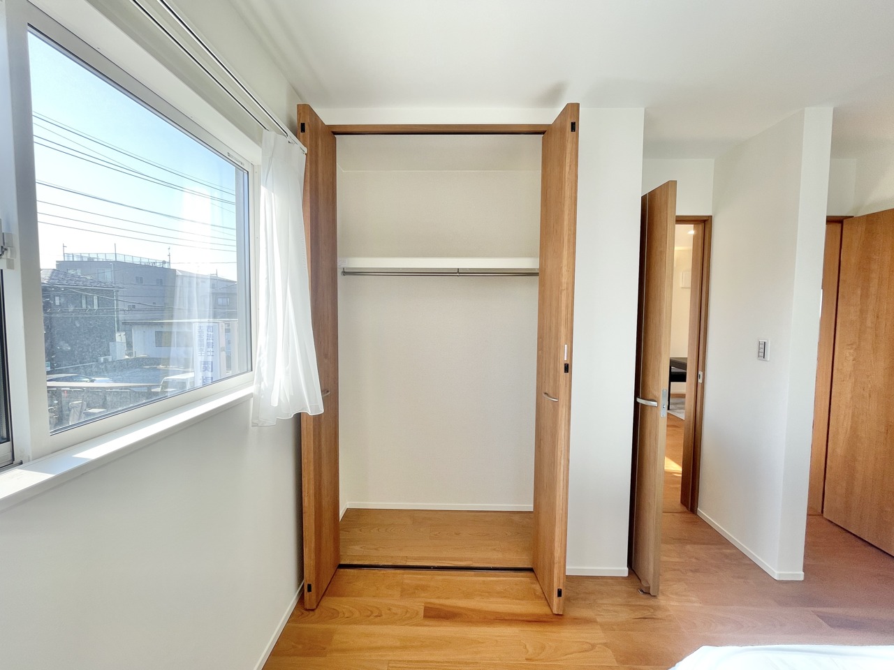 この部屋だれの部屋にしようかな、なんて会話を現地で楽しんでください。 木の温もりと白壁が調和する、心地よい空間