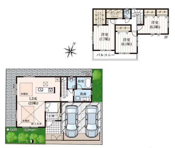 - ※完成予想図はいずれも外構、植栽、外観等実際のものとは多少異なることがあります。