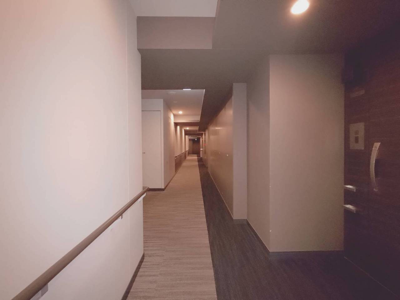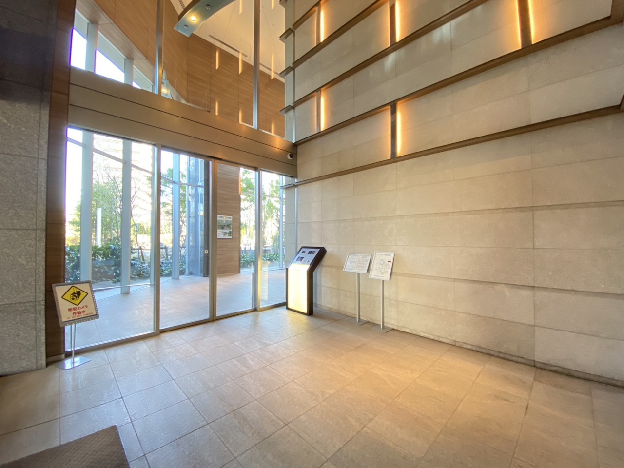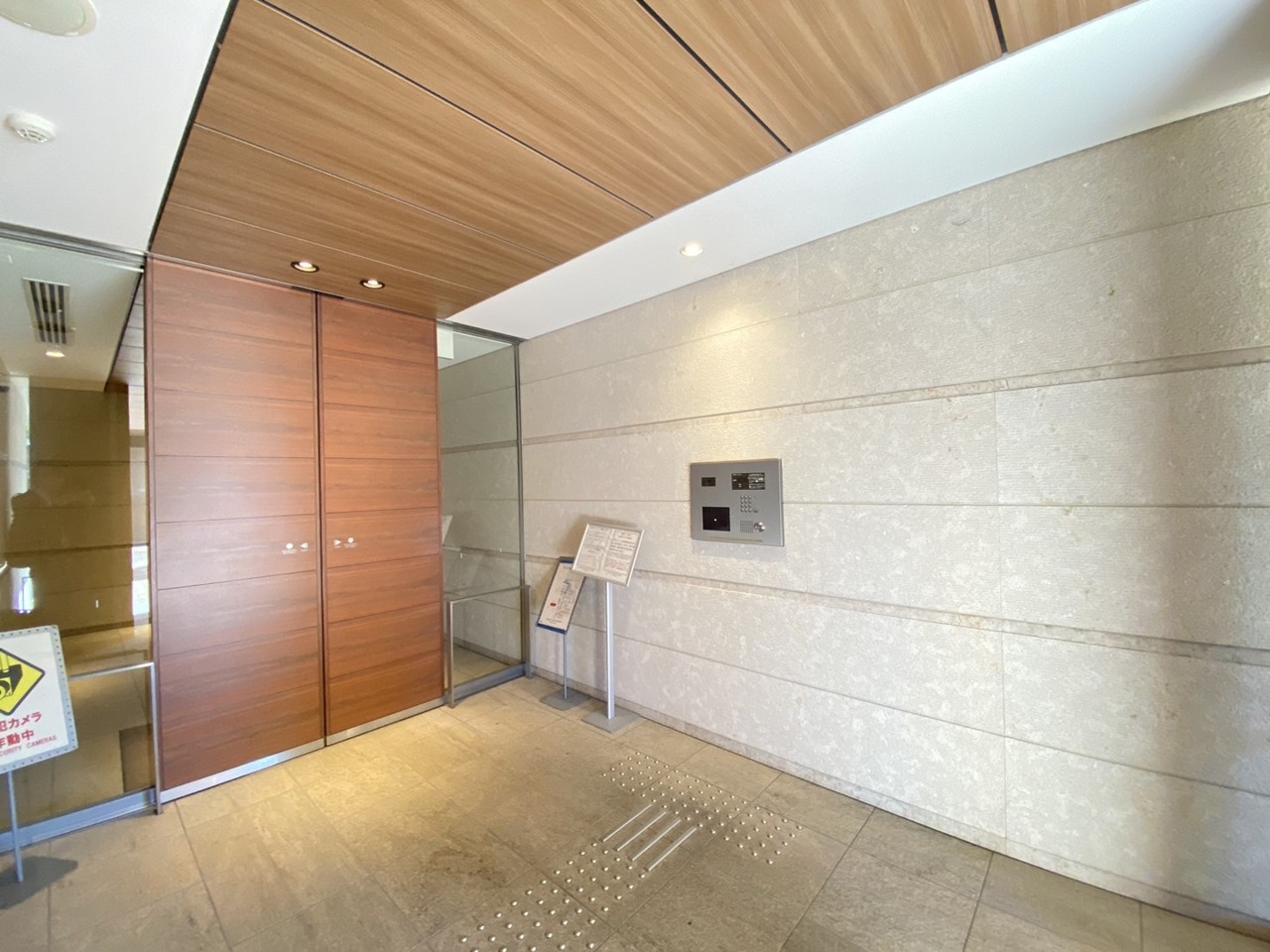 広々とした空間と、上品な木目調の扉が迎えるエントランス