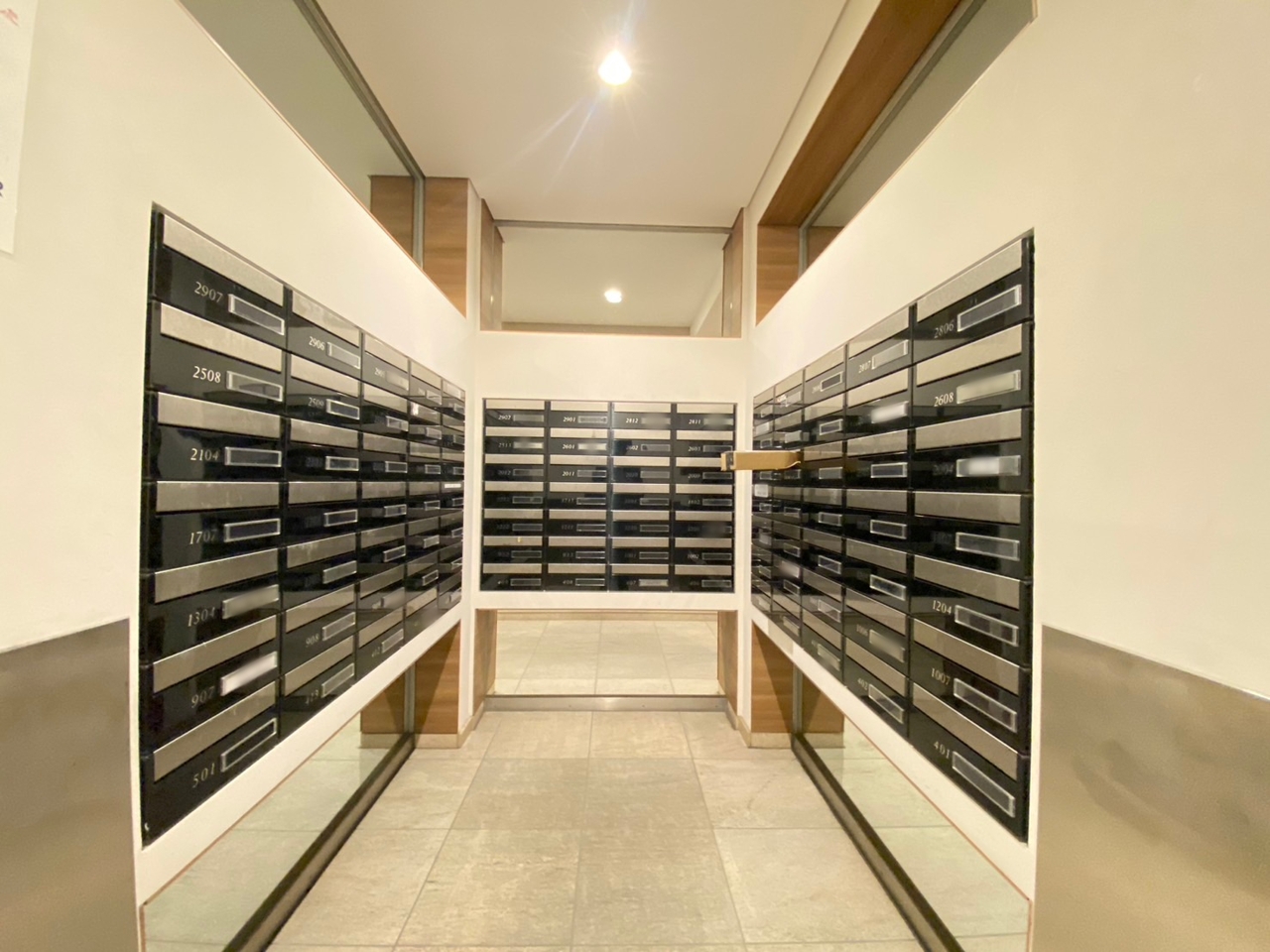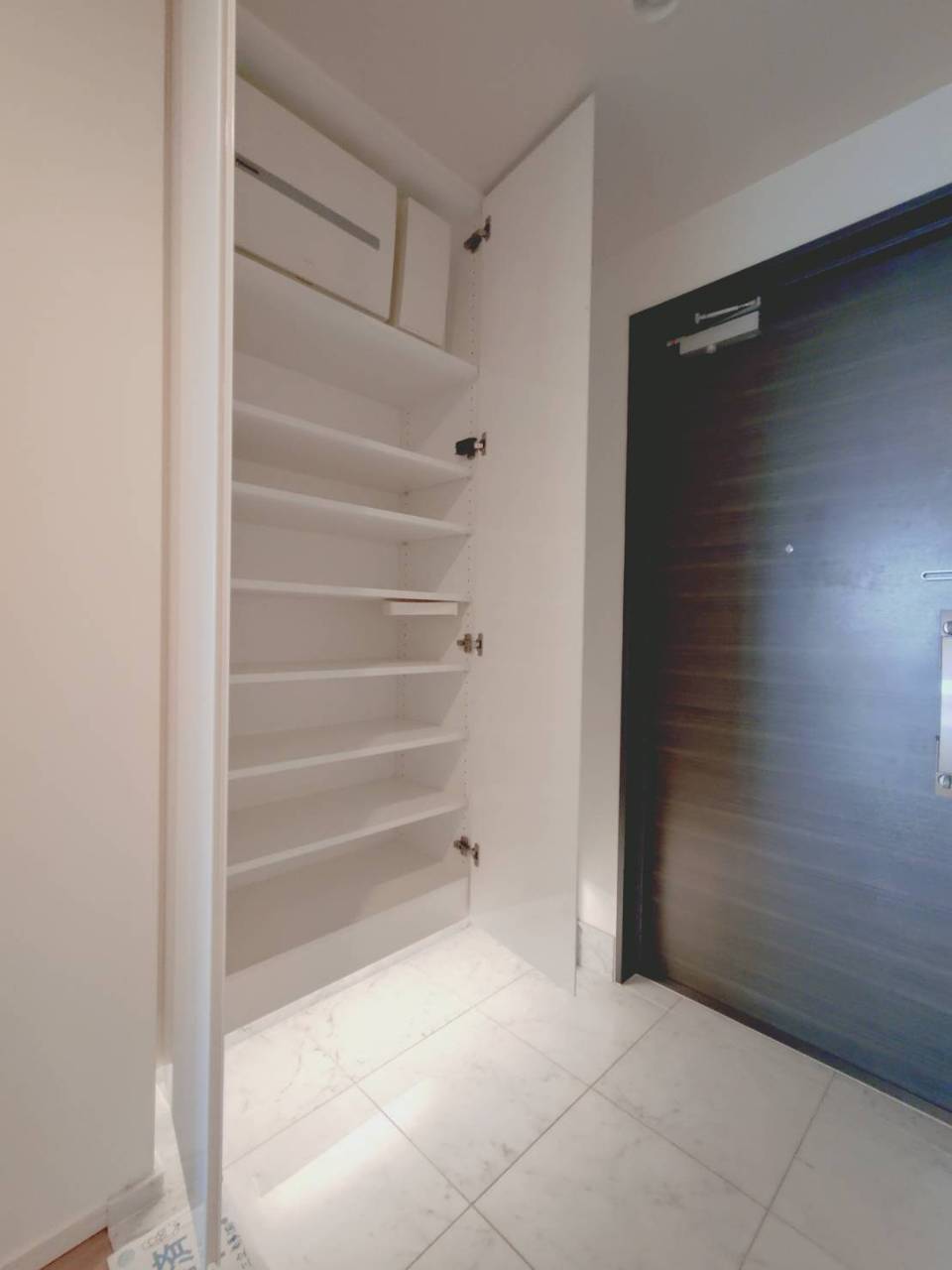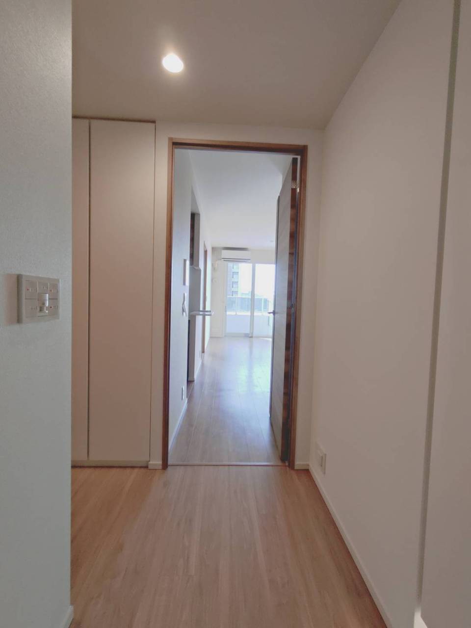 広々とした空間と、上品な木目調の扉が迎えるエントランス
