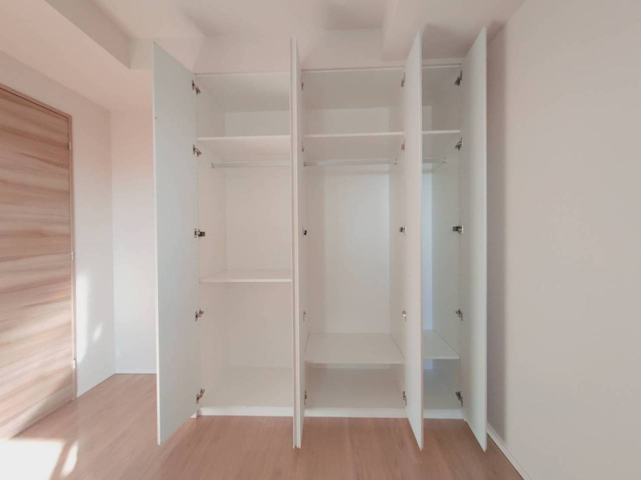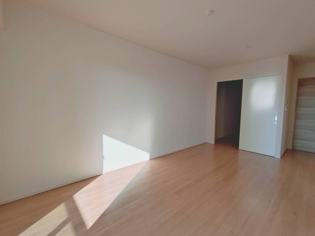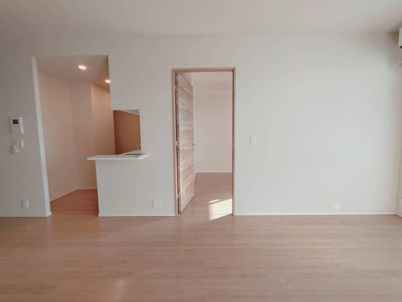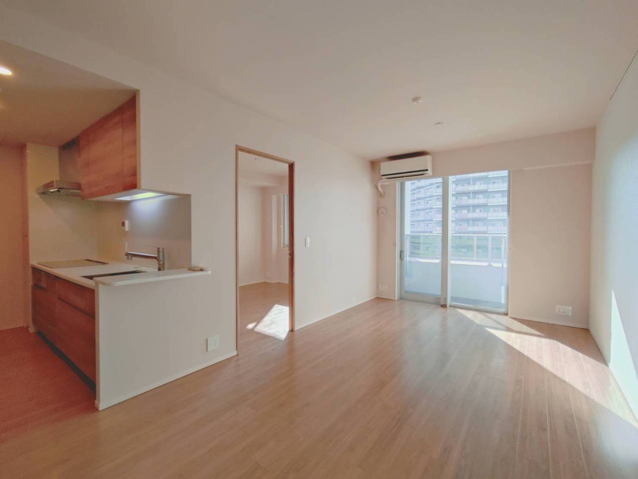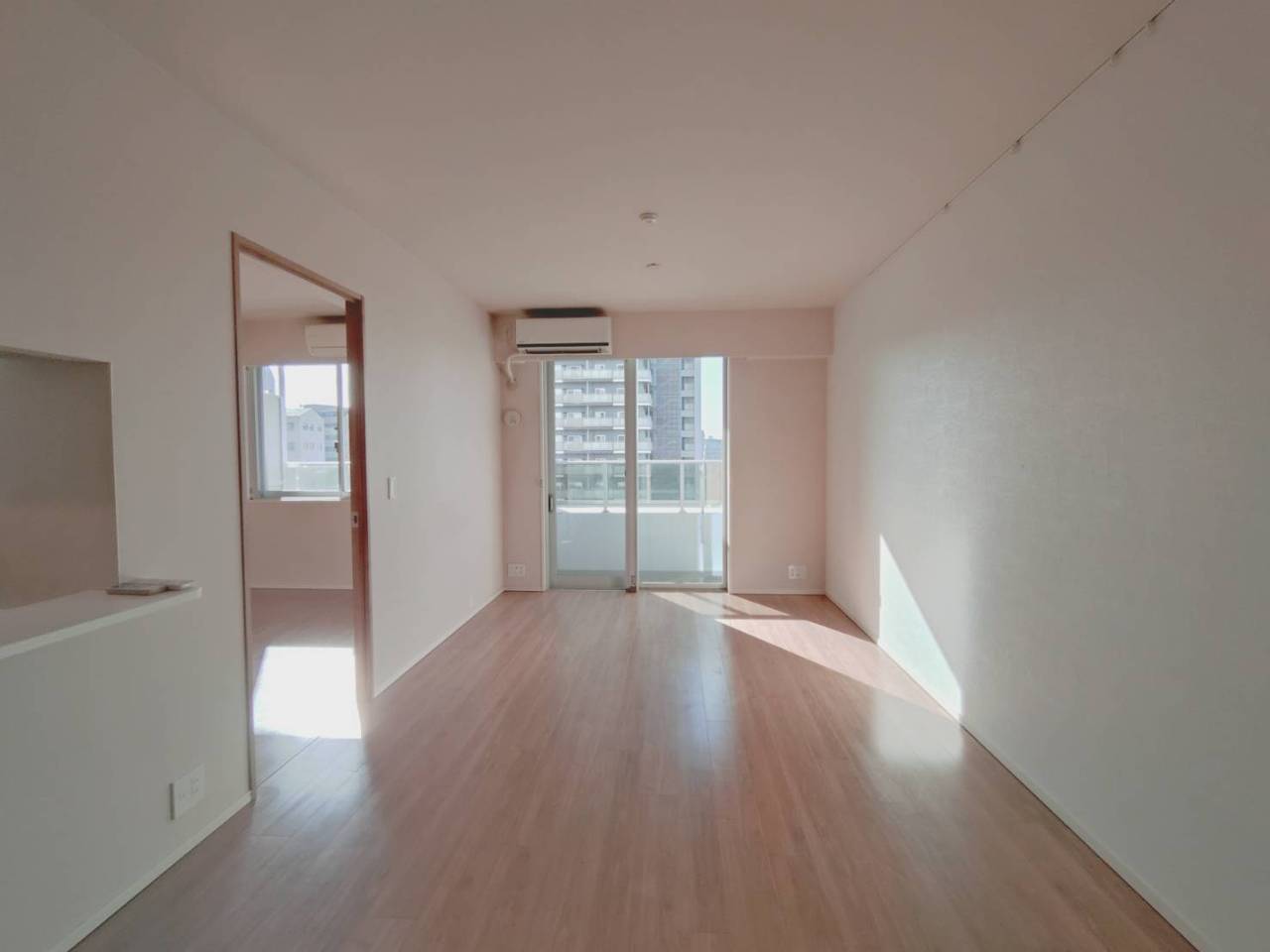 柔らかな光が木目調の床を優しく照らす、心地よい空間