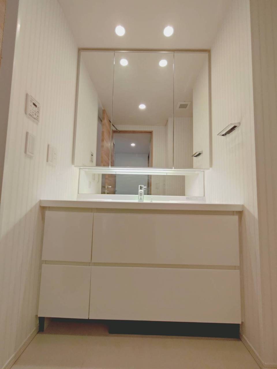 整然とした空間に、清潔感のある白が調和する印象