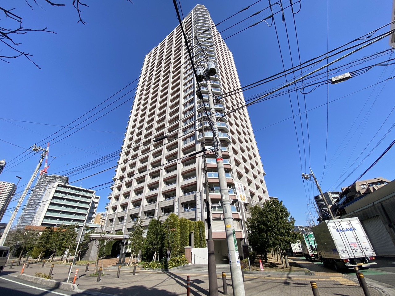 悠然とそびえるタワーマンション、開放的な空と調和する洗練された住まい。