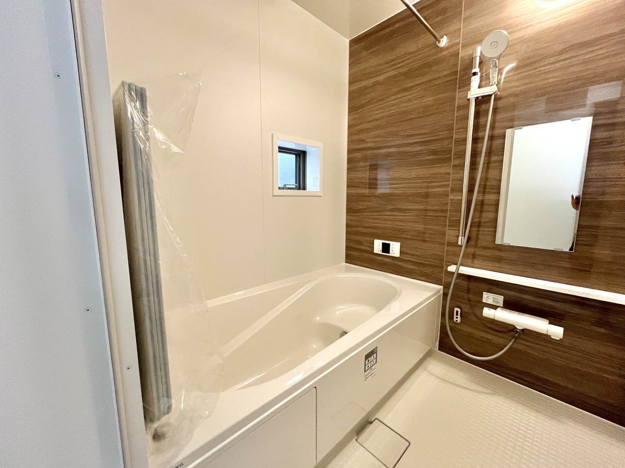 A号棟 温もりを感じる木目調の壁に囲まれた、くつろぎのバスタイム