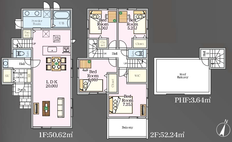 | 間取 | 4LDK (LDK20.0帖、洋室7.25帖、洋室6.00帖、洋室5.25帖、洋室5.00帖) | ||