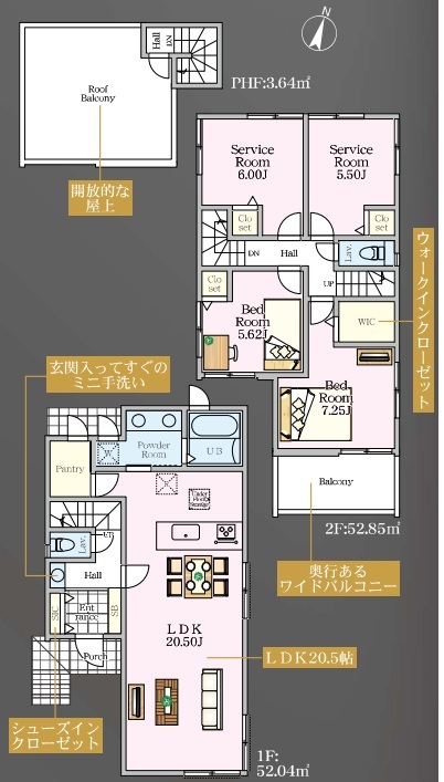 | 間取 | 2LDK + 2SSLDK (LDK20.5帖、洋室7.25帖、洋室5.62帖、S6.00帖、S5.50帖) | ||