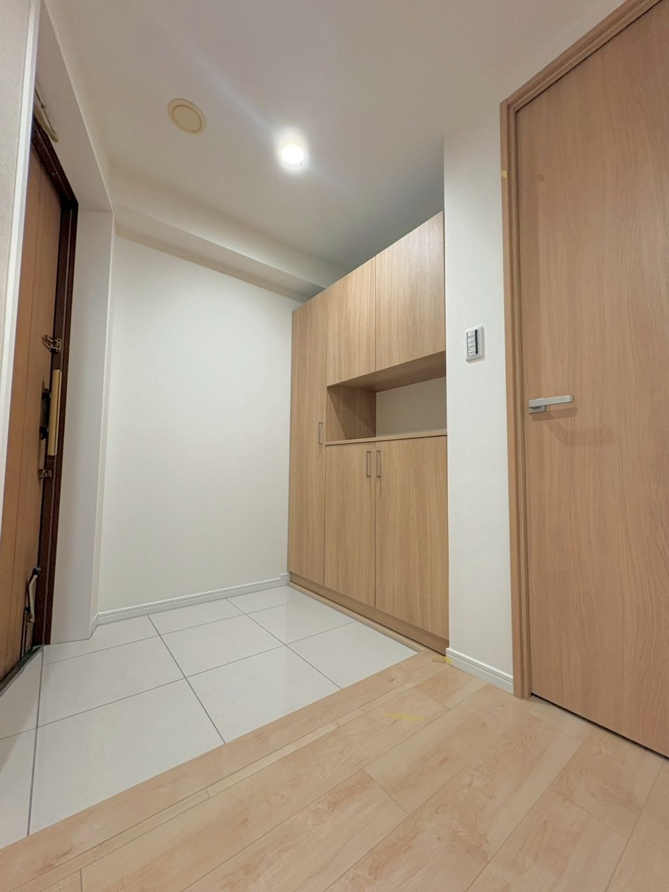 玄関は家の第一印象を左右する重要な場所。ほどよい広さとスタイリッシュな色遣いが印象的です。