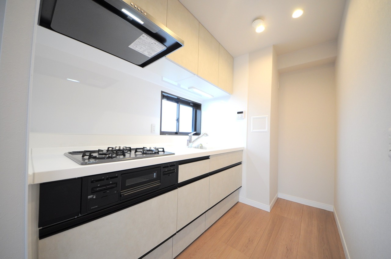 明るい光が降り注ぐ窓があるキッチンはお料理を作る時の気持ちもいつもより明るくなります。近くに窓があるので換気もしやすいですね。