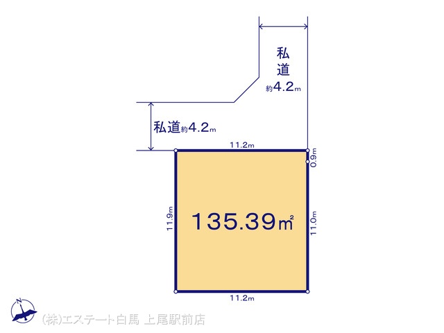 | 土地面積 | 135.39m² 実測 (私道286.49m²別に有、私道持分比率:1/11) | ||