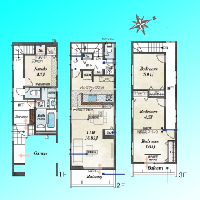| 間取 | 2LDK (LDK16.83帖、洋室9.5帖、洋室5帖、S4.5帖) | ||