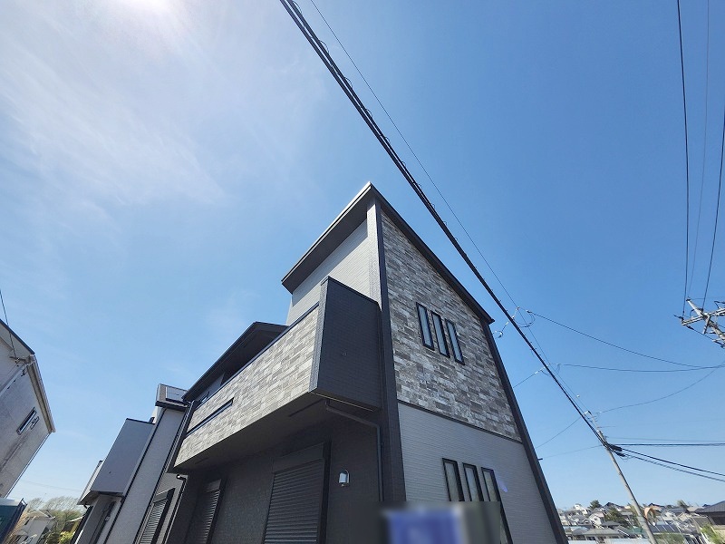 周辺の街並みの中で適度な主張、生活に溶け込むシンプルなデザインの外観が魅力の一戸建です。