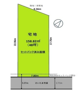 | 土地面積 | 158.82m² 公簿 (セットバック0.64m²) | ||