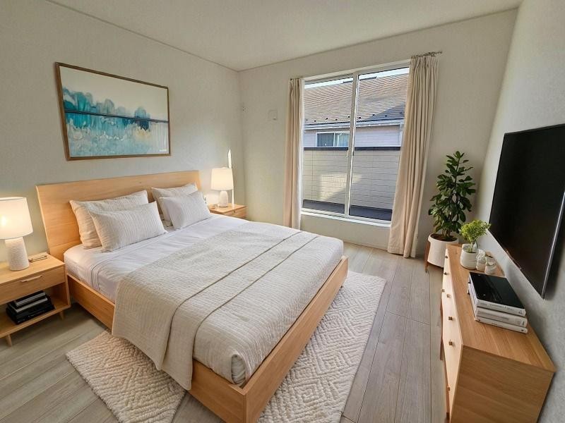 洋室はモダンなデザインと機能性を備え、快適な生活空間に。明るい窓から差し込む自然光が広々とした空間をさらに明るく開放的に感じさせます。