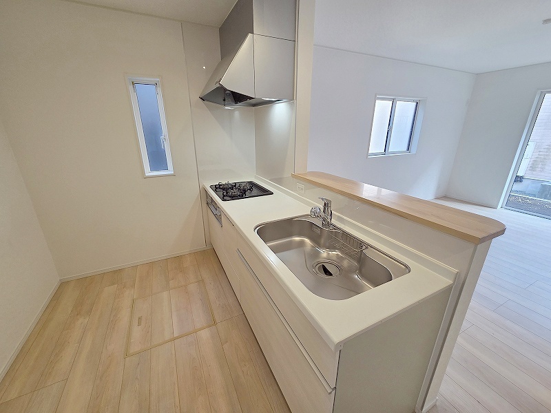 カウンターキッチンならではの開放的な見通し、全体が見渡せることでご家族の団欒スペースもより明るく笑顔が溢れる空間となります。
