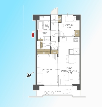 | 間取 | 2LDK (LDK10.3帖、洋室4.1帖、洋室6.3帖) | ||