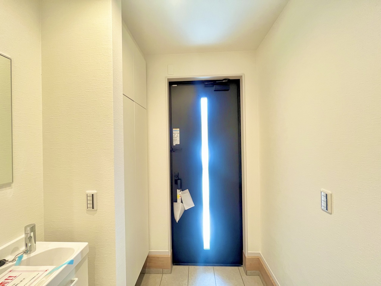 明るく開放的な玄関、靴の脱ぎ履きもしやすく、収納も豊富でご家族皆様の靴をスッキリ収納できます。