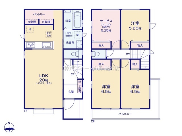 | 間取 | 4LDK (LDK20帖、洋室6.5帖、洋室6.5帖、洋室5.25帖、洋室5.25帖) | ||