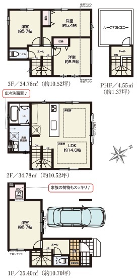 | 間取 | 4LDK (LDK14.6帖、洋室6.7帖、洋室5.7帖、洋室5.5帖、洋室5.4帖) | ||