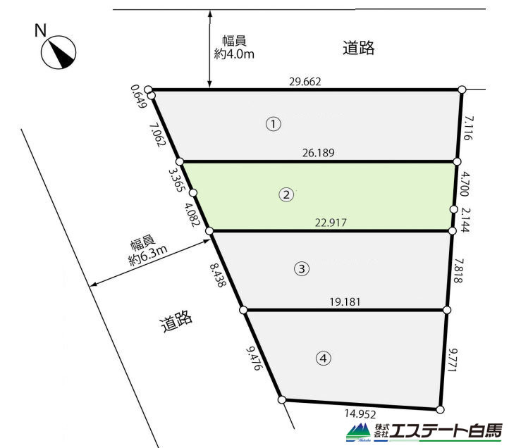 | 権利種類 | 所有権 | 接道 | 西側6.3M公道に接道 北東側4M公道に接道 |