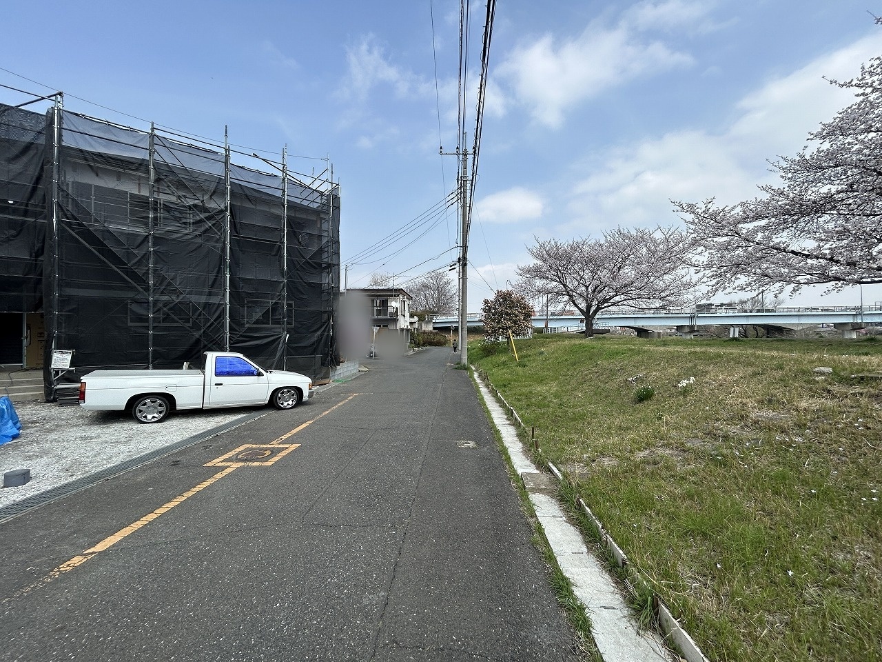 1号棟 すぐ近くは河川敷で今の時期は桜がきれいです。