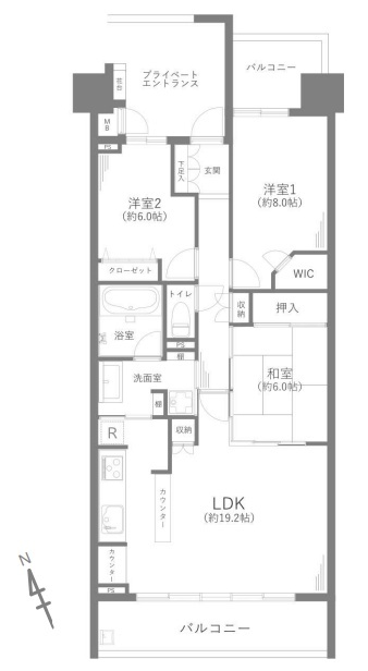 | バルコニー面積 | 19.89m² 南西向き | ||