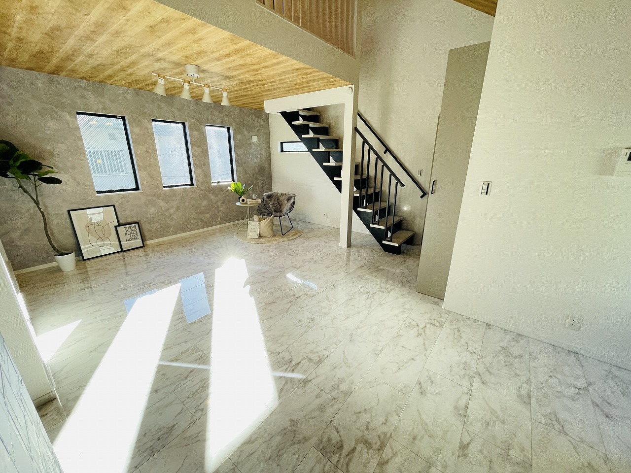 リビングの真ん中に階段がある人気のリビング階段。自然と家族のコミュニケーションが増えます。 家族みんなが集まるリビング。広さを重視した家族全員が集まれるリビングは、住む上で大事な空間になります。