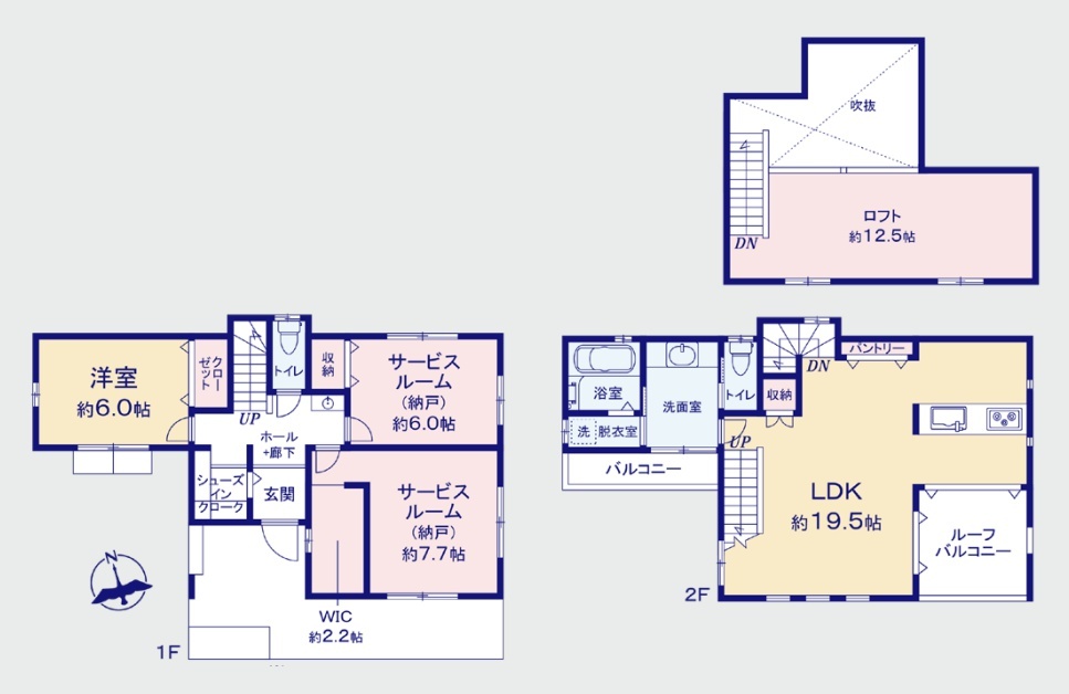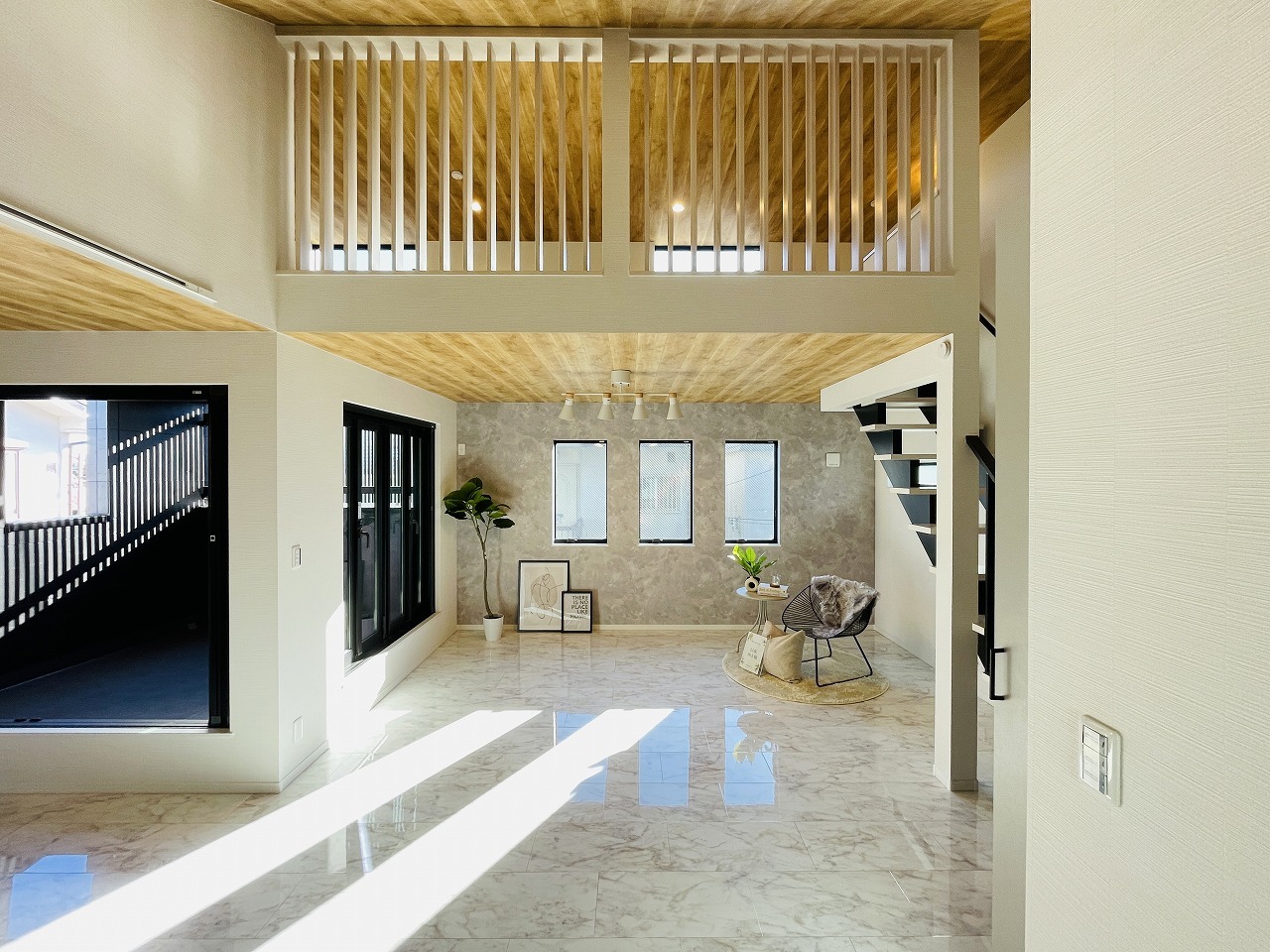 吹抜けの空間を意識した開放感のある間取り。そして上部にロフトを配置。スタイリッシュかつ収納も豊富で長く機能的に住める家を目指して。