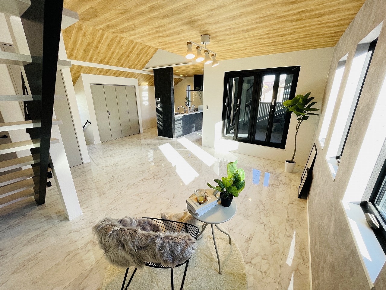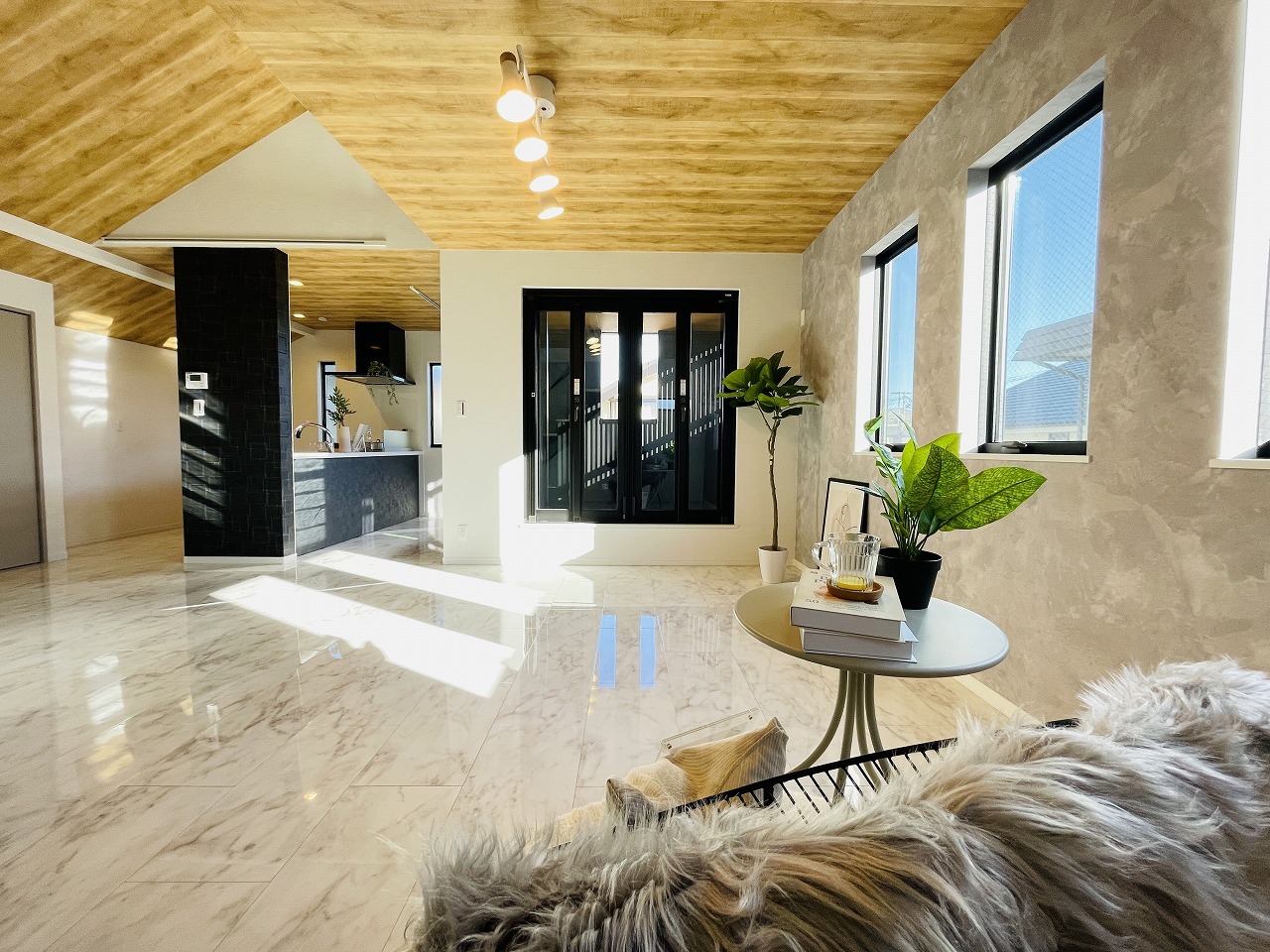 温もりある木目天井が、心地よい安らぎをもたらすリビング空間