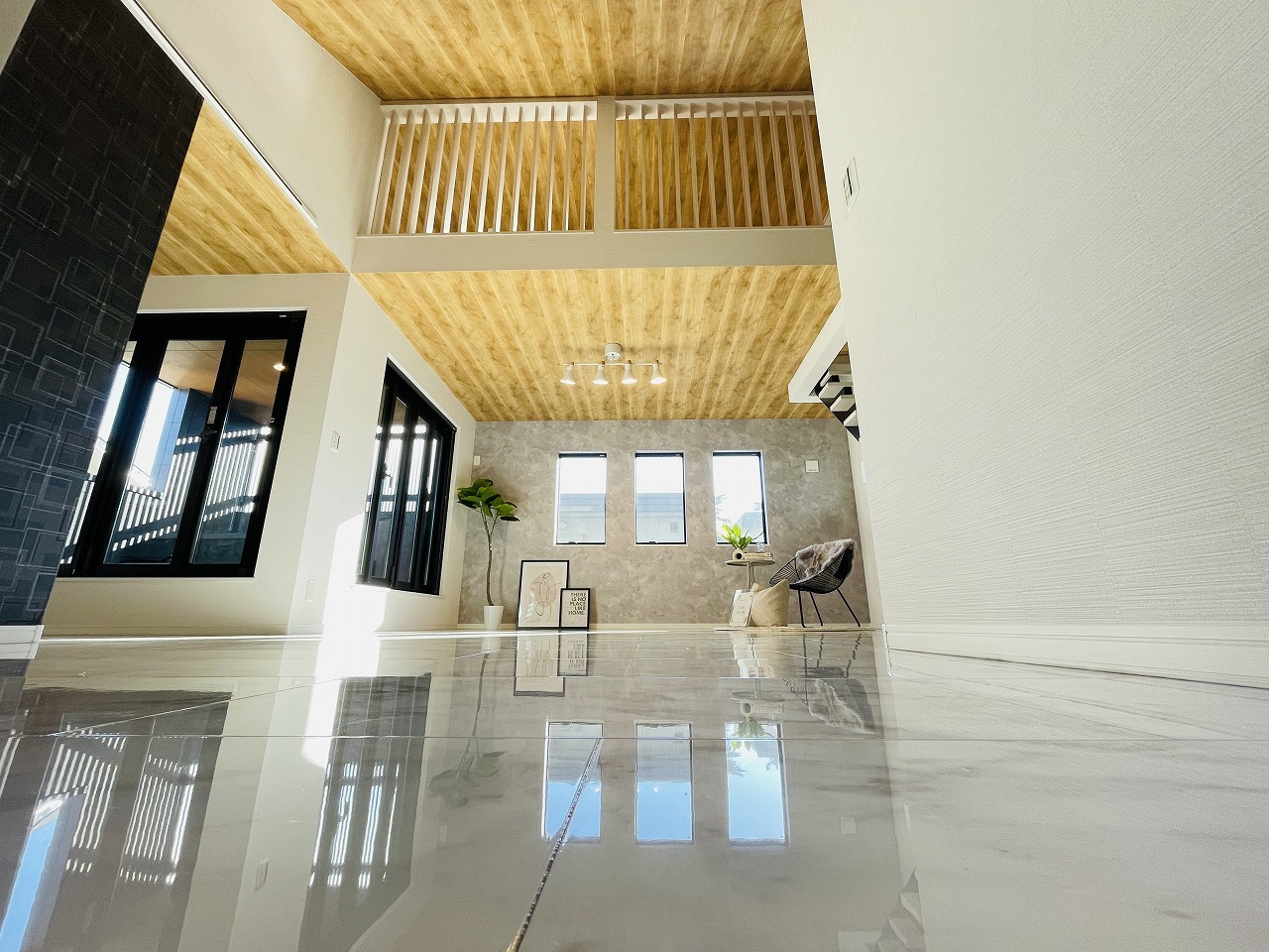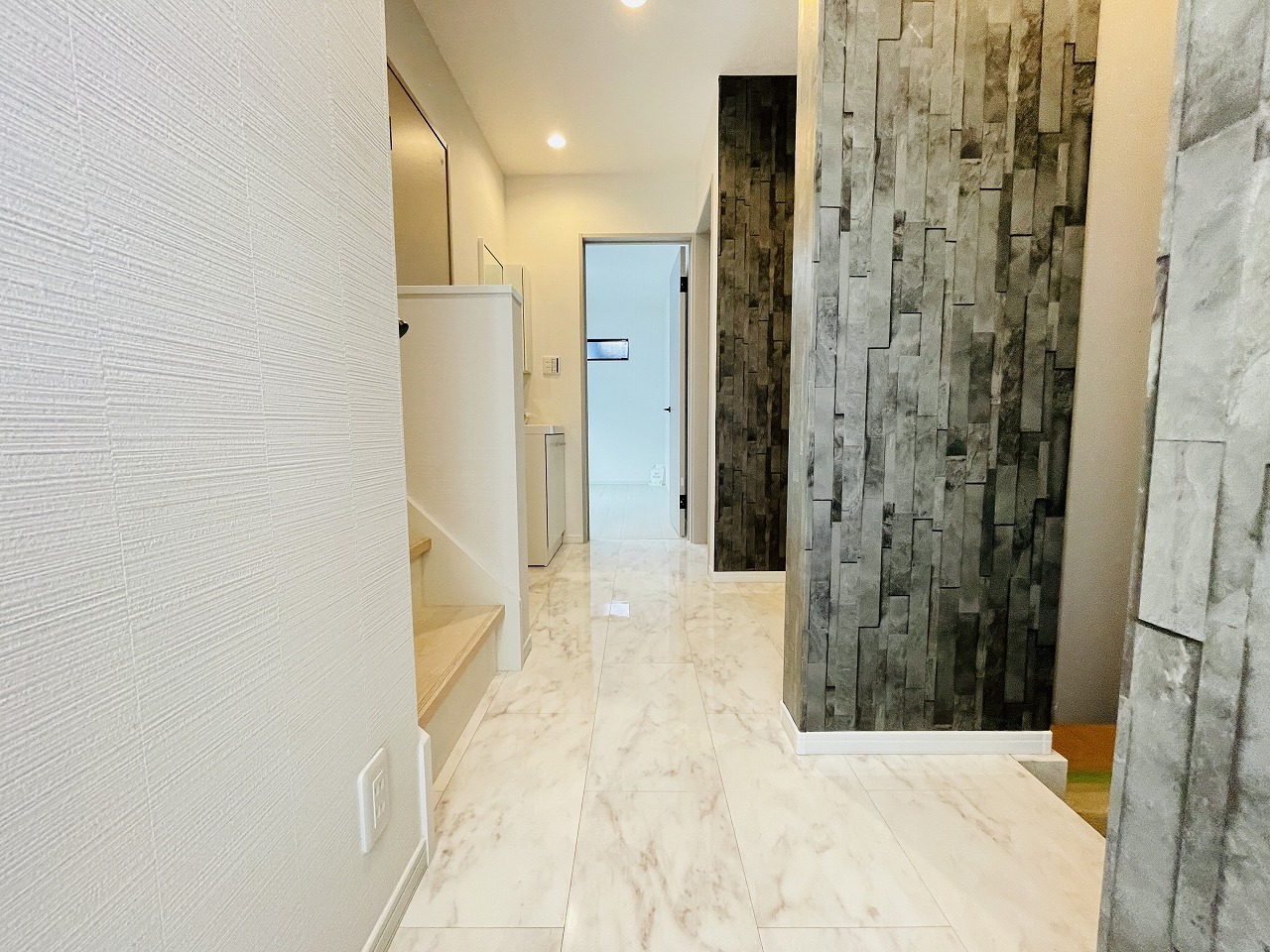 明るく広々とした玄関は、家に入る瞬間から心地よい居心地を感じさせます。シューズインクローゼットも完備して収納もタップリ。