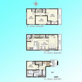 | 建物面積 | 102.72m² ~ 121.5m² 実測 (車庫面積11.69平米含む) | ||