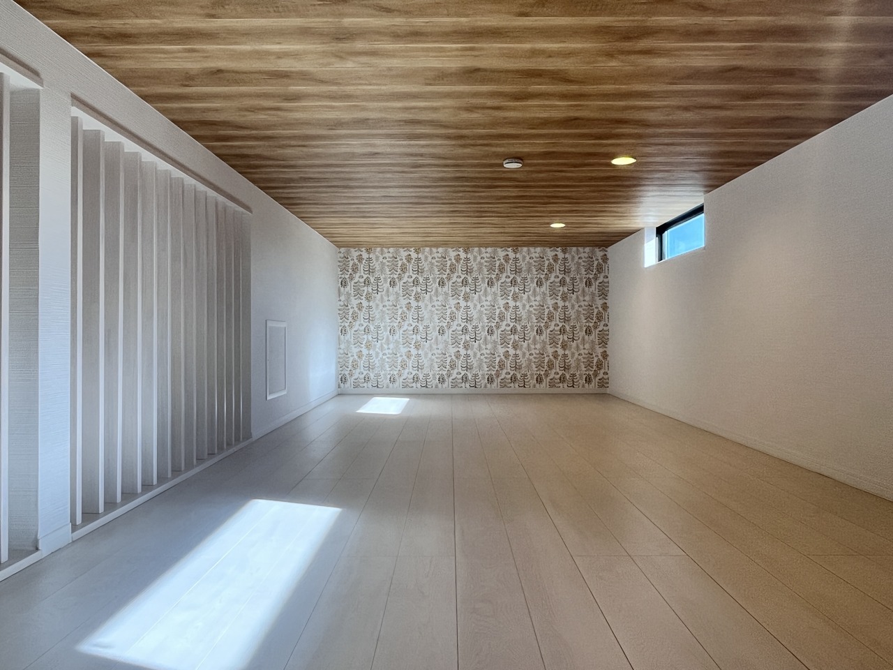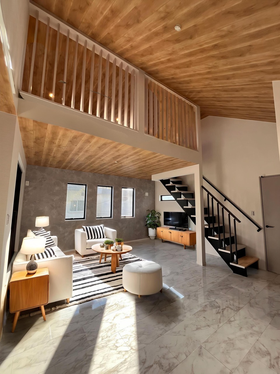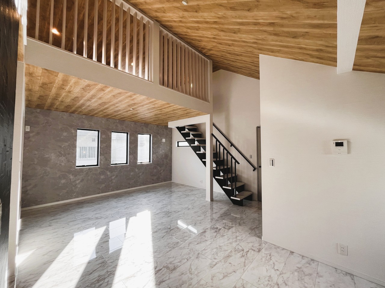 プライバシーの守られた2階リビングは19.5帖の広々空間です。 固定階段式のロフトも十分な広さです。