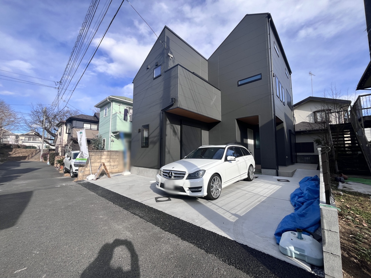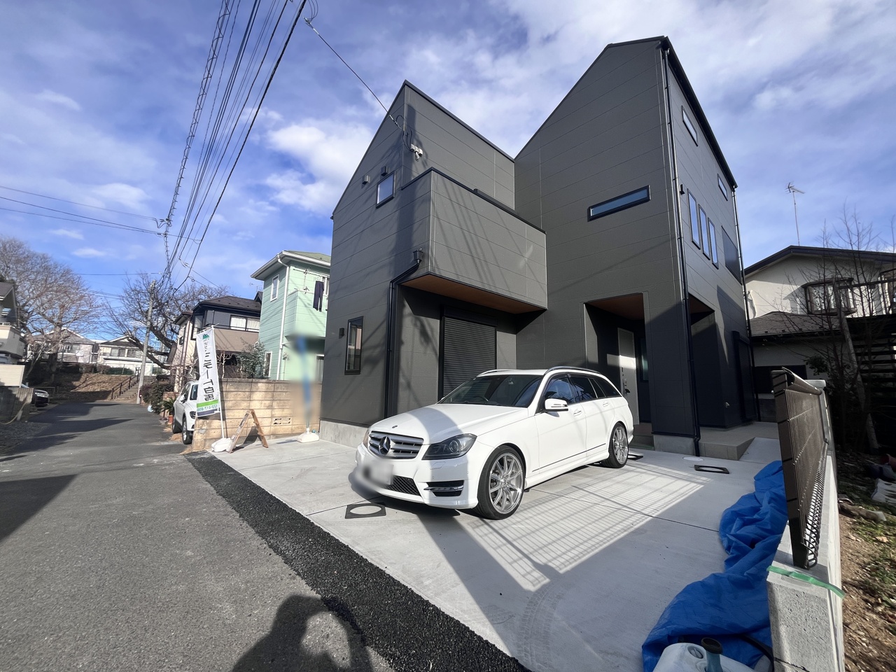 モダンな外観が印象的な、洗練された邸宅