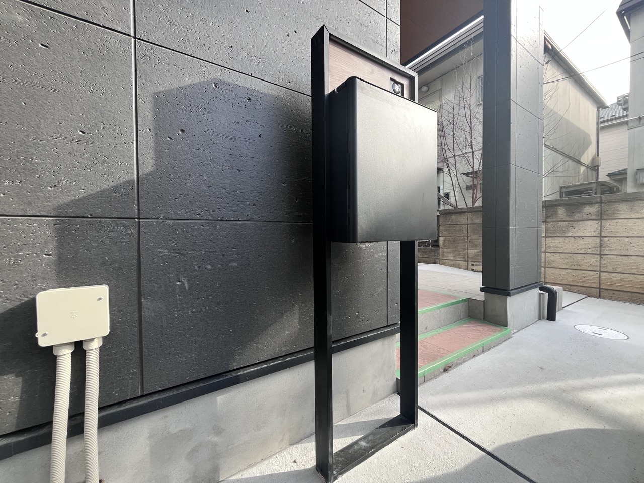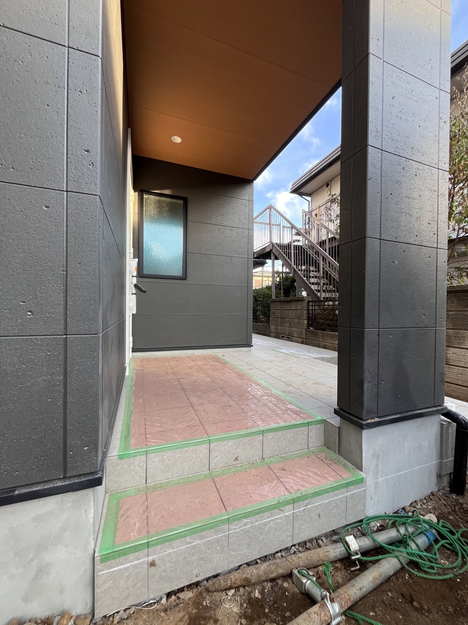 駐車場から玄関、テラスへは階段とスロープがあるので自転車や車いすも楽々移動ができます。