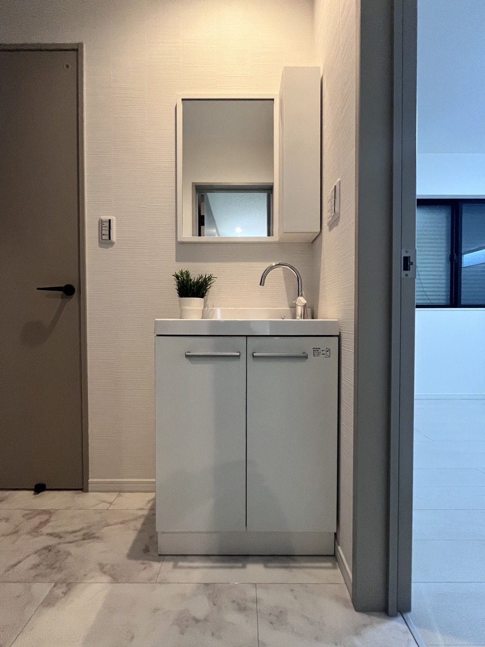 玄関に設置された洗面台は帰宅時の手洗いにとても便利です