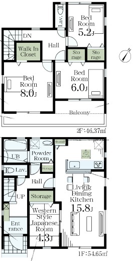 | 間取 | 4LDK (LDK15.8帖、洋室8.0帖、洋室6.0帖、洋室5.2帖、和室4.3帖) | ||