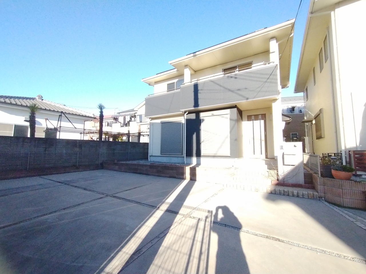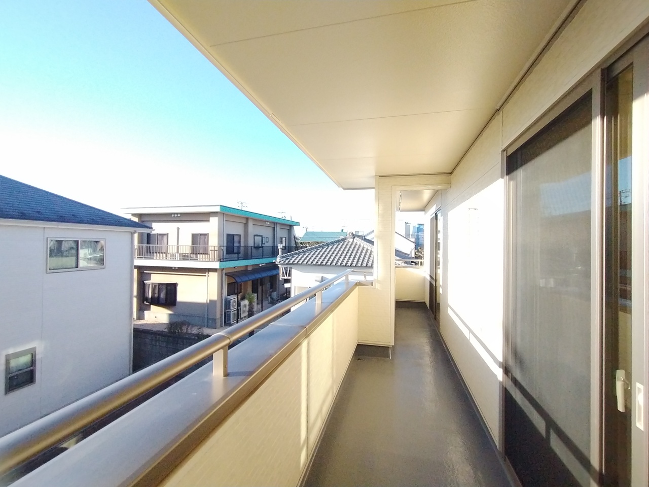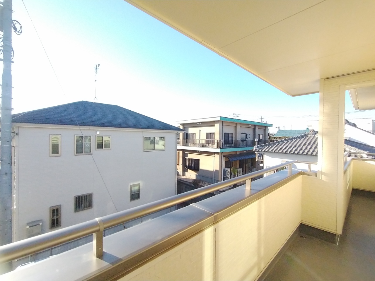 住宅街の2階南向きのお部屋、日当たりはご覧のとおり良好です。