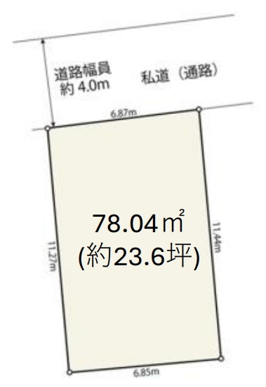 | 接道 | 北側4M私道に6.87M接道 | 取引態様 | 媒介 |