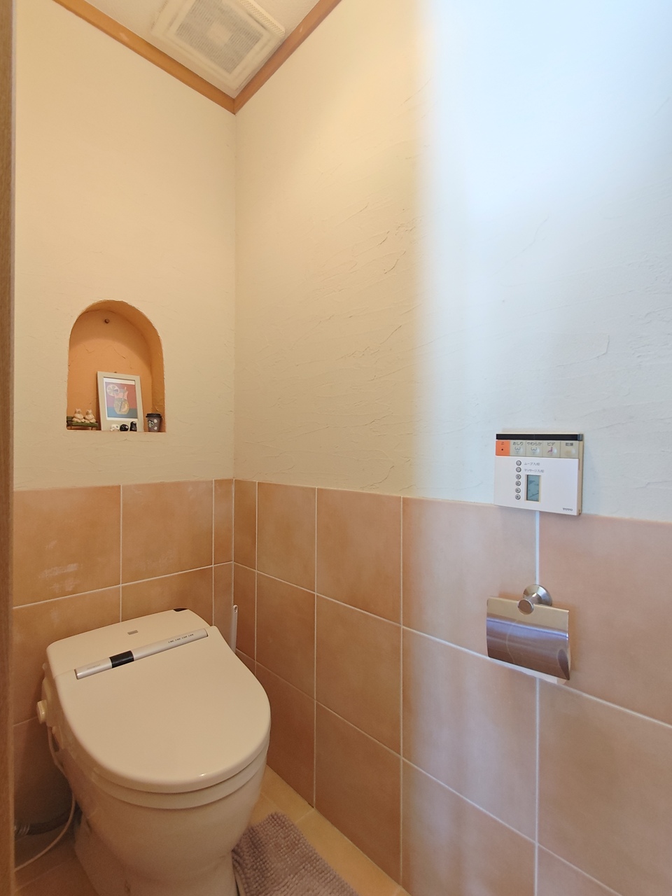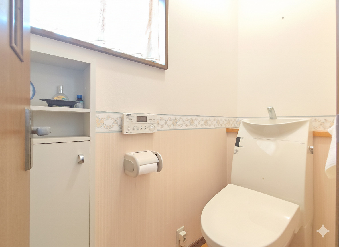 1階トイレはスタイリッシュな見た目が人気のタンクレストイレ。 トイレは1階と2階にそれぞれ設置されております。