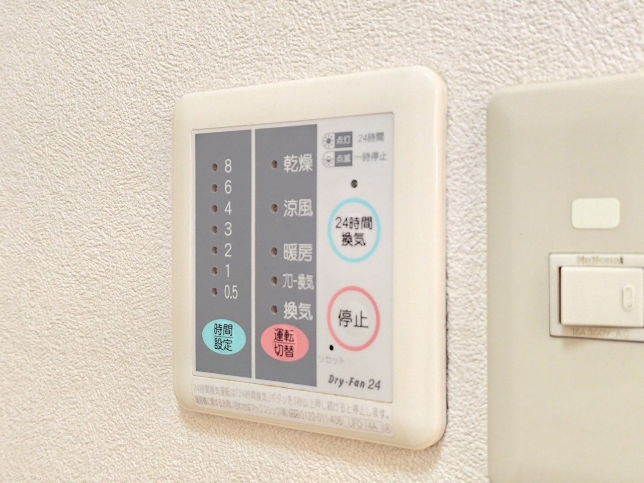 便利な浴室暖房乾燥機つき。 浴室内をすぐ乾かせてメンテナンスしやすく、また雨の日のお洗濯でも安心です。