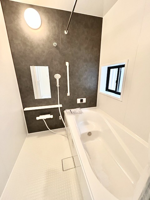 B号棟 その日の疲れをゆっくりと落としてくれる場所、お子様との大事なひと時を楽しくしてくれる場所。曲線美も感じられるくつろぎのバスタブは、半身浴も楽しめる居心地の良さ。 2026/02/08m