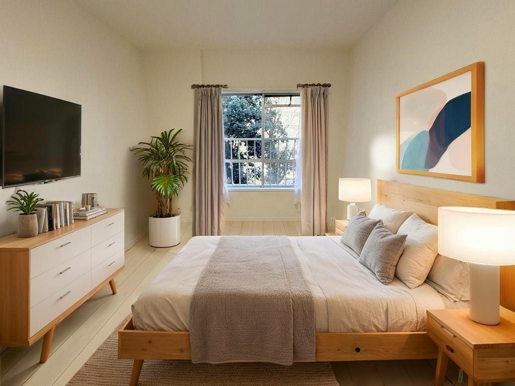 洋室はモダンなデザインと機能性を備え、快適な生活空間に。明るい窓から差し込む自然光が広々とした空間をさらに明るく開放的に感じさせます。