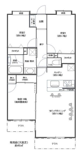| 備考・制限等 | テラス9平米、専用庭55.35平米 | ||