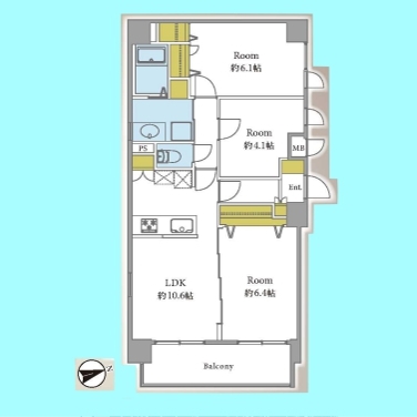| 間取 | 3LDK (LDK10.6帖、洋室6.4帖、洋室6.1帖、洋室4.1帖) | ||