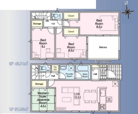 | 間取 | 4LDK (LDK16.5帖、和室4.5帖、洋室8.5帖、洋室6.5帖、洋室6帖) | ||