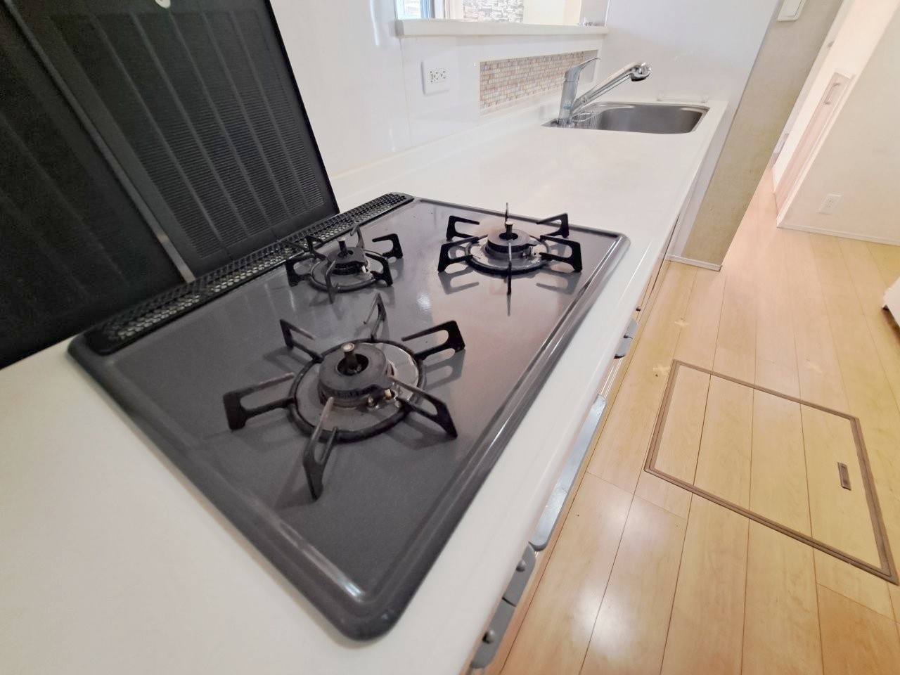 キッチンコンロスペースの近くには、空気の入れ替えが可能な開口部を設置!! お料理をする際には、換気扇を回しながら匂いが籠らない様に開放してお料理もお楽しみ頂けます。