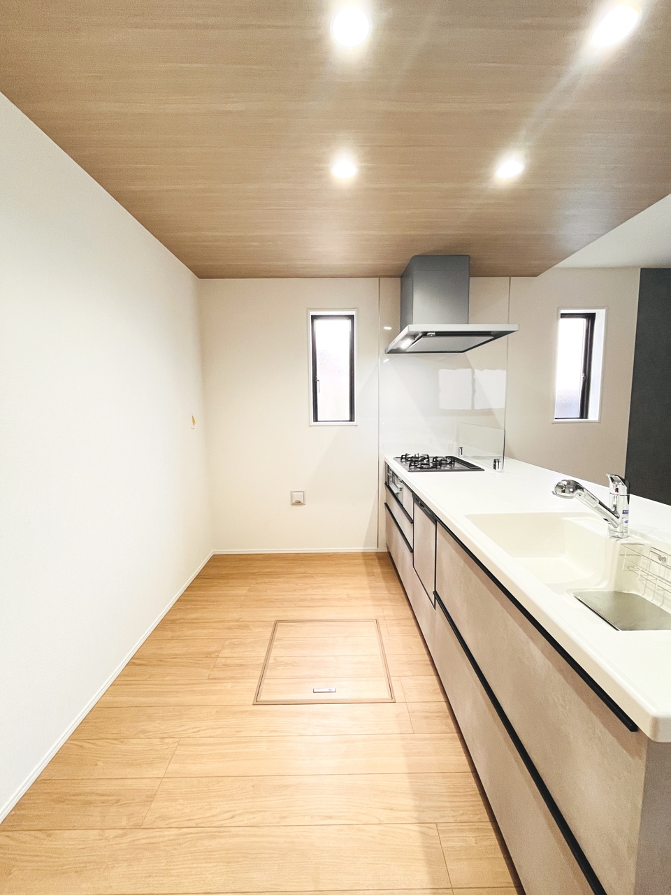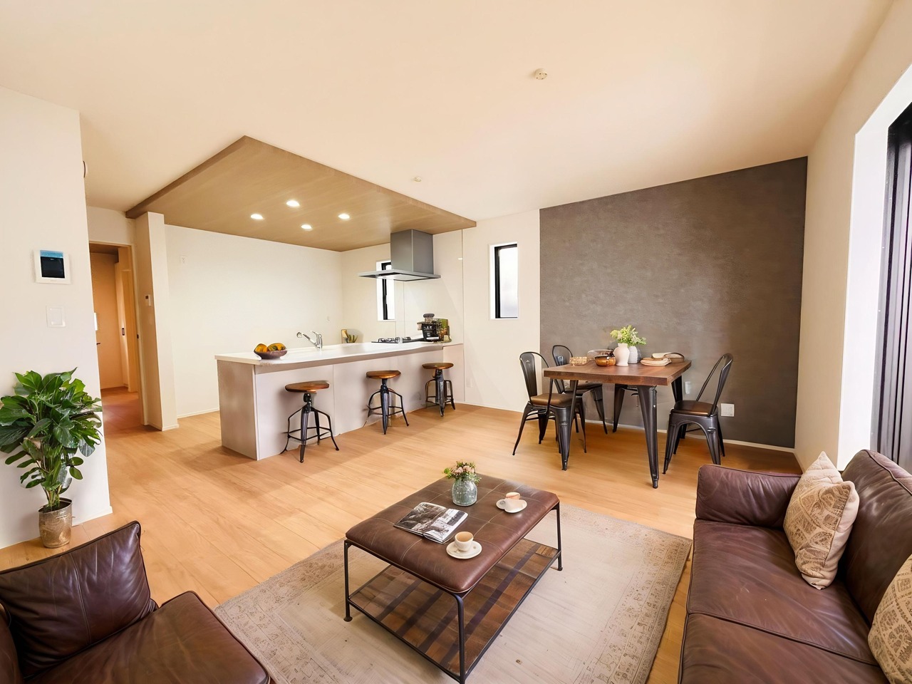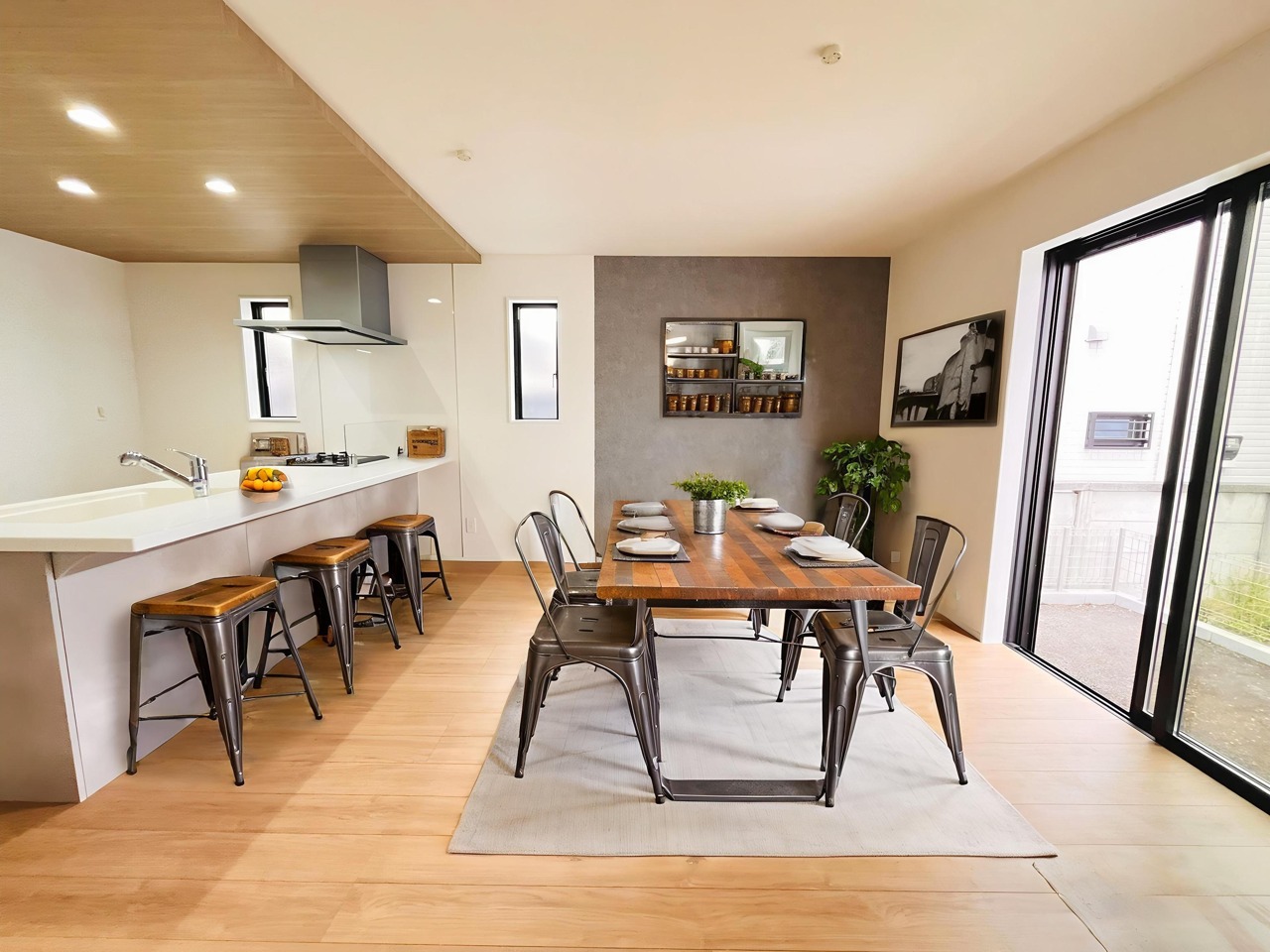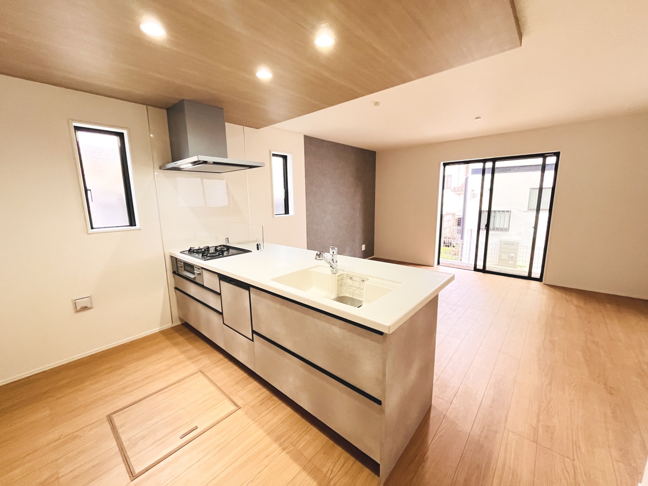 カウンターキッチンならではの開放的な見通し、全体が見渡せることでご家族の団欒スペースもより明るく笑顔が溢れる空間となります。
